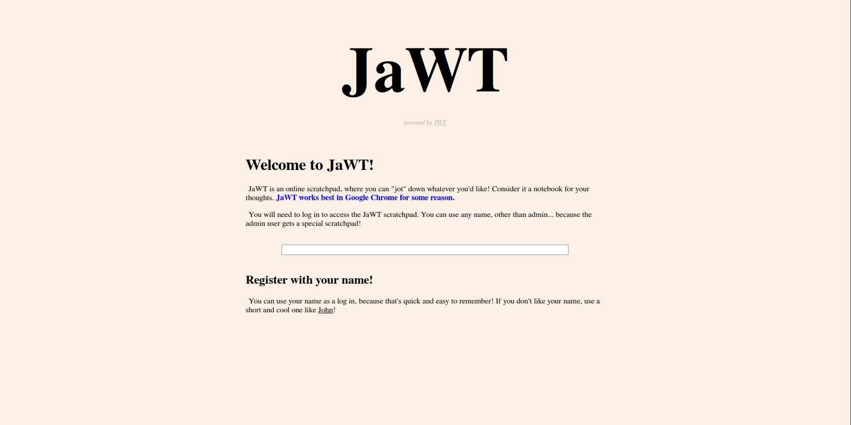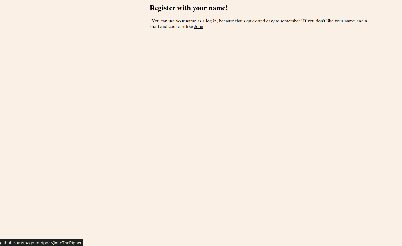 Taking a look around, one thing is immediately apparent: we want to log in as the admin. Another thing (which is less apparent) is that we will have to crack a hash to do so; I only noticed this when I hovered over the link for “John” and saw that it led to John the Ripper.