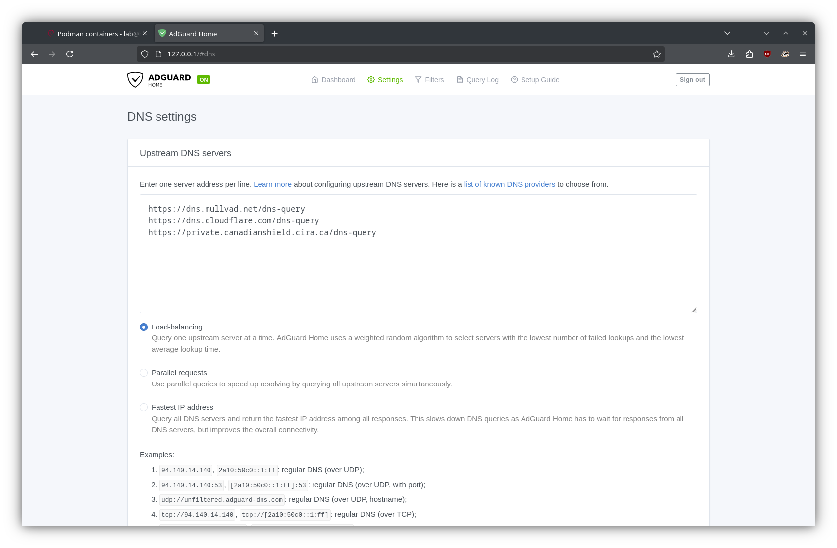 Using Podman, there are two paths for deploying an AdGuard container (or any container, really):
