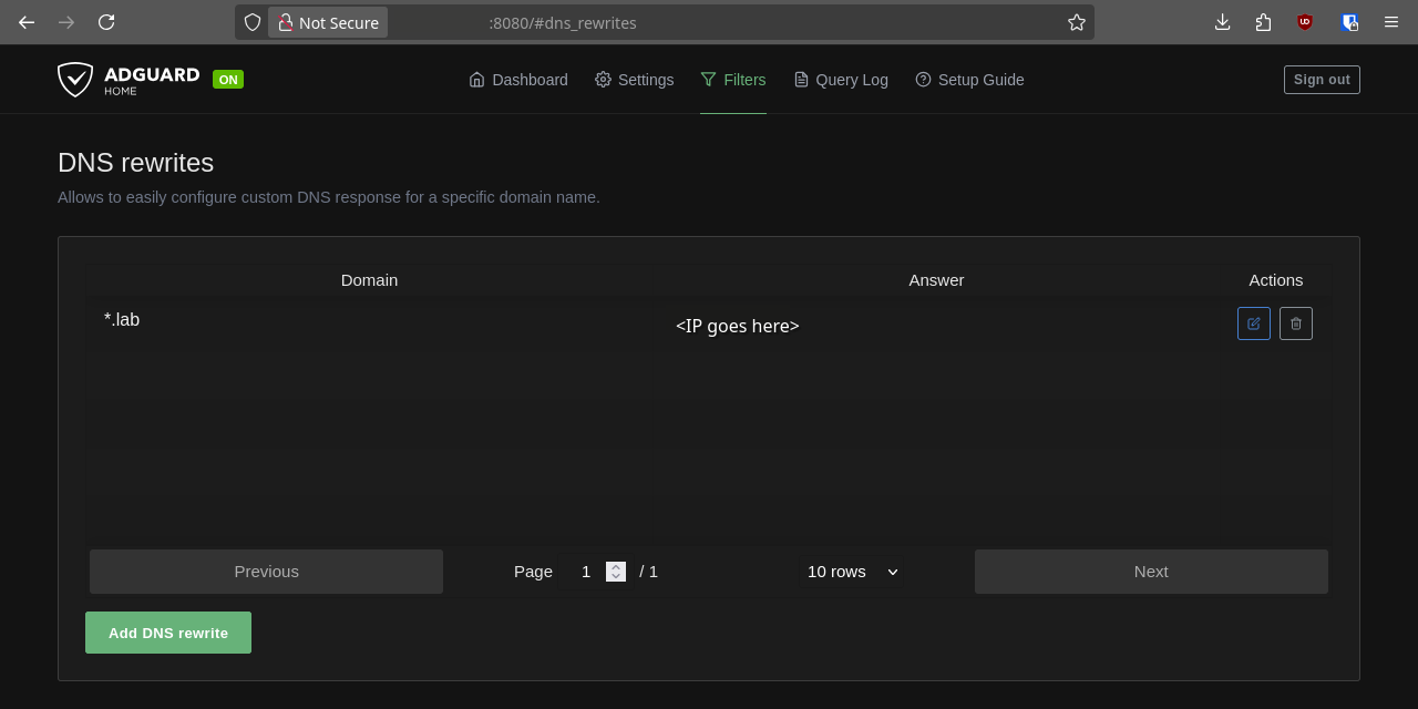 Now, all requests to, say, test.lab are rewritten by AdGuard: